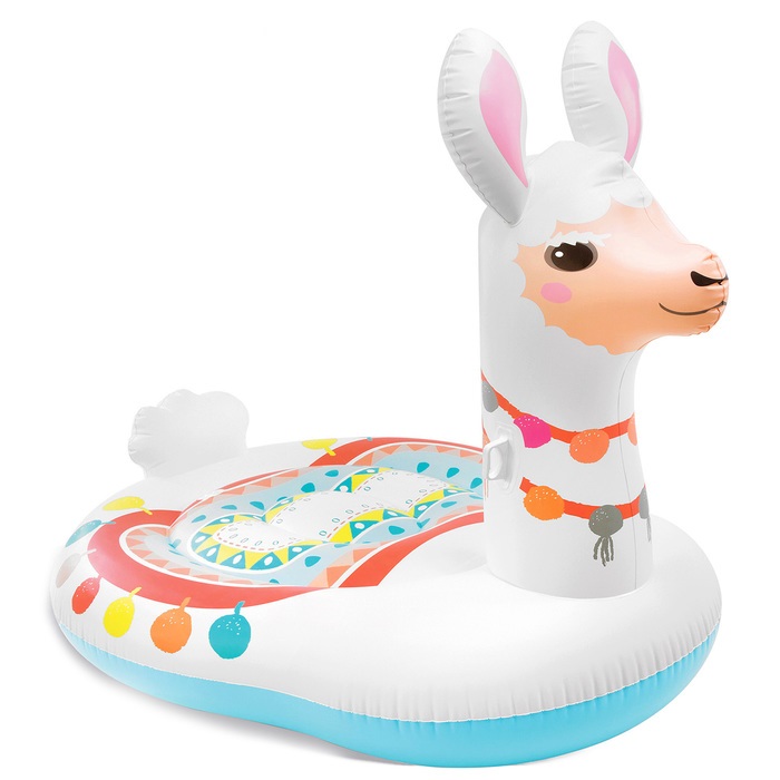 Надувной плот в виде ламы 57294 - восхитительный плавающий островок. На нем можно плавать лежа или верхом держась за шею. Плот лама рассчитан для взрослых. Изготовлен из высокопрочного винила толщиной 0,35 мм. Две воздушные камеры. Удобные ручки. Размер: 201х147х173см.